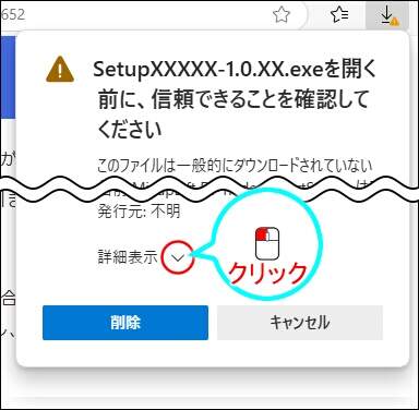 警告メッセージが表示される場合には、以下の手順を参照してダウンロードを行ってください。